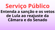 19/02/2026 12h34 Entenda a sanção e os vetos de Lula ao reajuste da Câmara e do SenadoLeis foram publicadas no Diário Oficial da União na quarta-feira (18) e garantem reajuste para 2026, mas retiram escalonamentos até 2029, licença compensatória em dinheiro, retroativos e dispositivos que poderiam ultrapassar o teto de R$ 46.366,19. | |