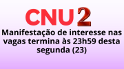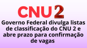 02/03/2026 13h30 CNU 2: prazo da 2ª rodada de confirmação de interesse termina às 23h59 desta segunda (2)Candidatos convocados devem registrar manifestação na área da pessoa candidata para permanecer na disputa por vaga imediata | |