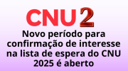 27/02/2026 10h29 Novo período para confirmação de interesse na lista de espera do CNU 2025 é abertoSegunda rodada segue até 2 de março e é obrigatória para candidatos classificados em vagas imediatas e cadastro reserva | |